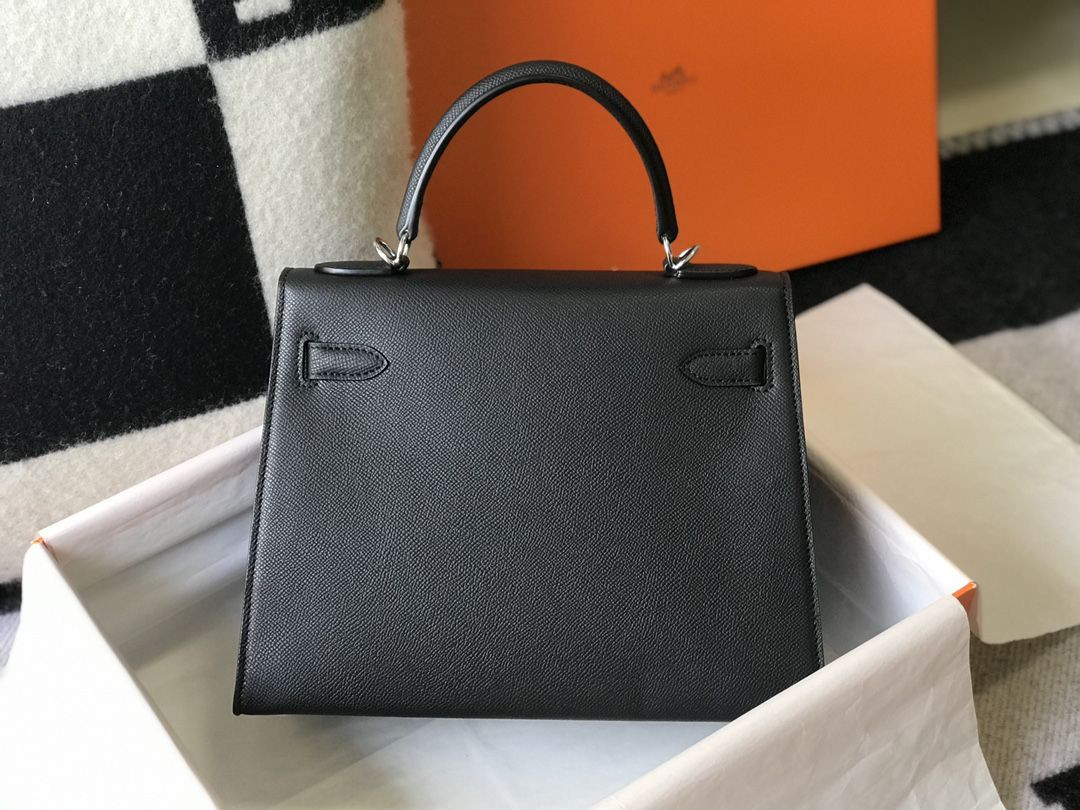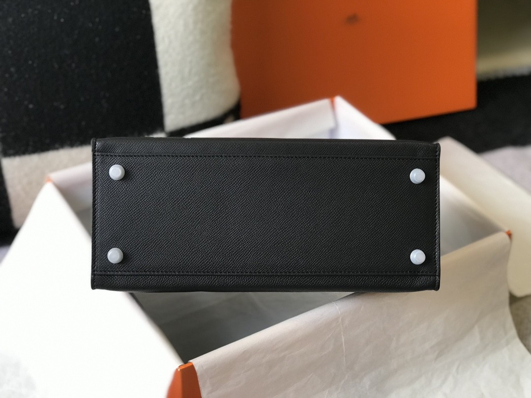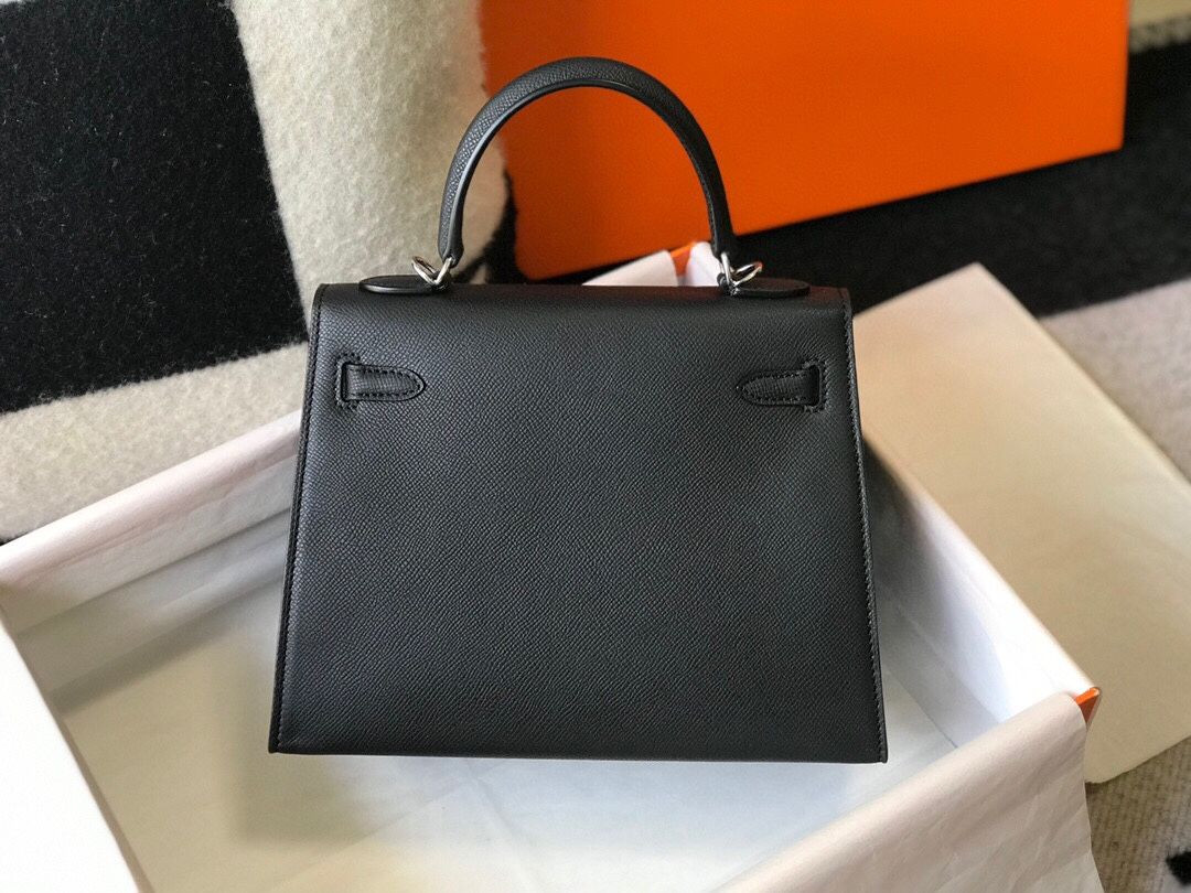 S01472 BLACK/SILVER HERMES KELLY 25cm